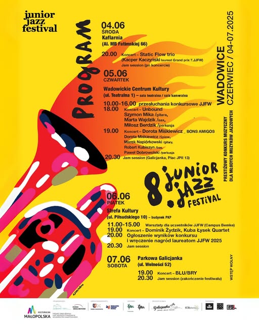 Junior Jazz Festival Static Flow trio Jam Session Data 04 cze 2025 Expired! Czas 20:00 - 20:00 Więcej informacji Czytaj więcej Lokalizacja Kaflarnia Aleja M.B. Fatimskiej 66, Wadowice Czytaj więcej Poleć to wydarzenie