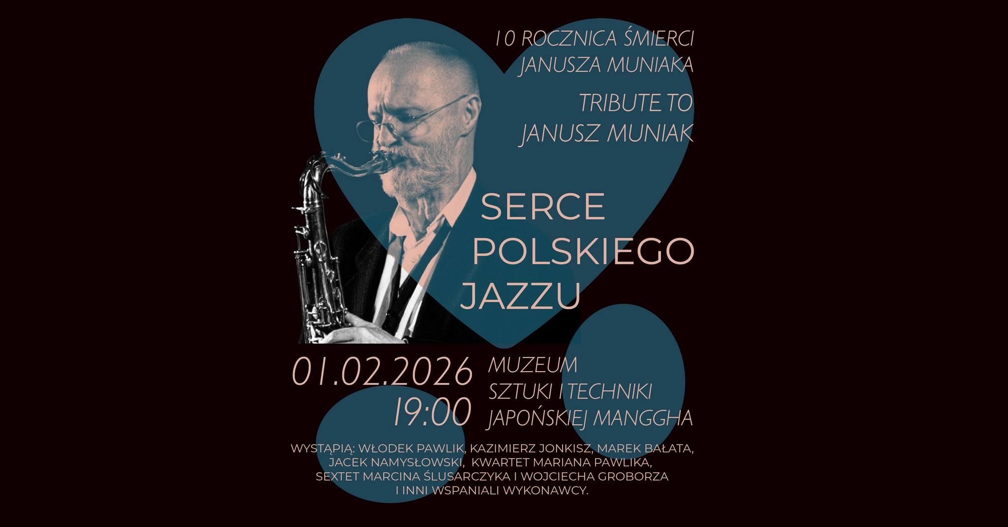 1 lutego o godz.19 w Muzeum Manggha byli jego partnerzy i wychowankowie zagrają razem koncert pt.”Tribute to Janusz Muniak”.